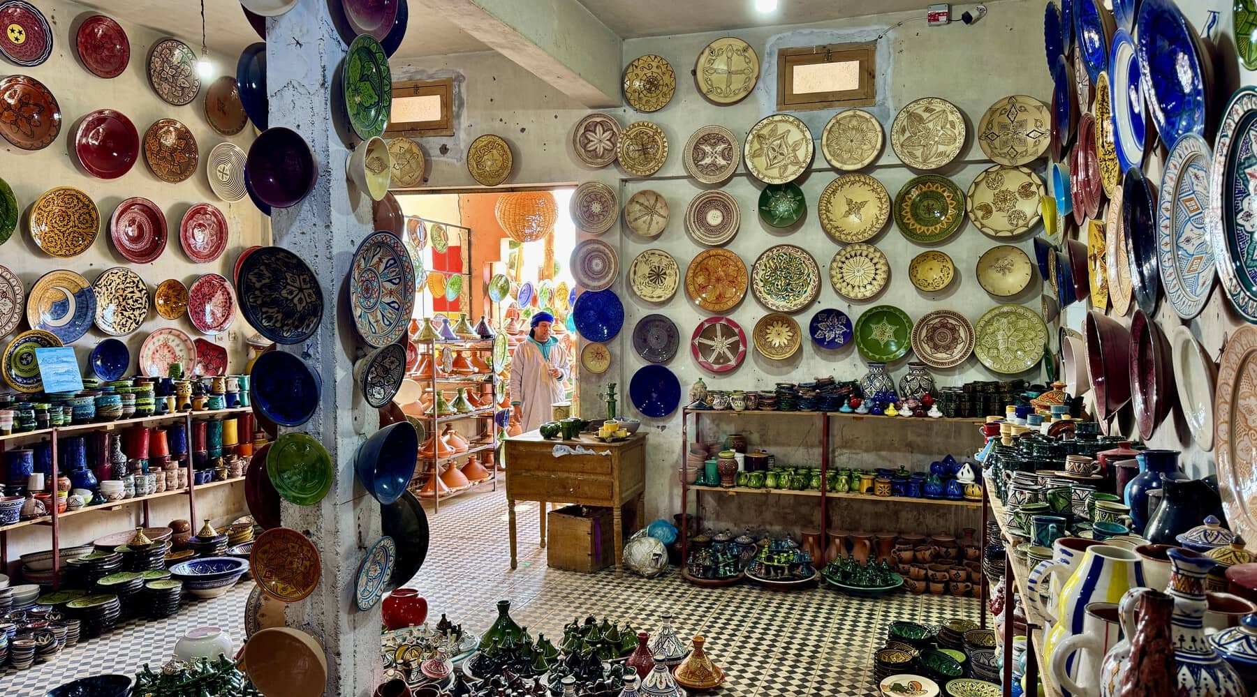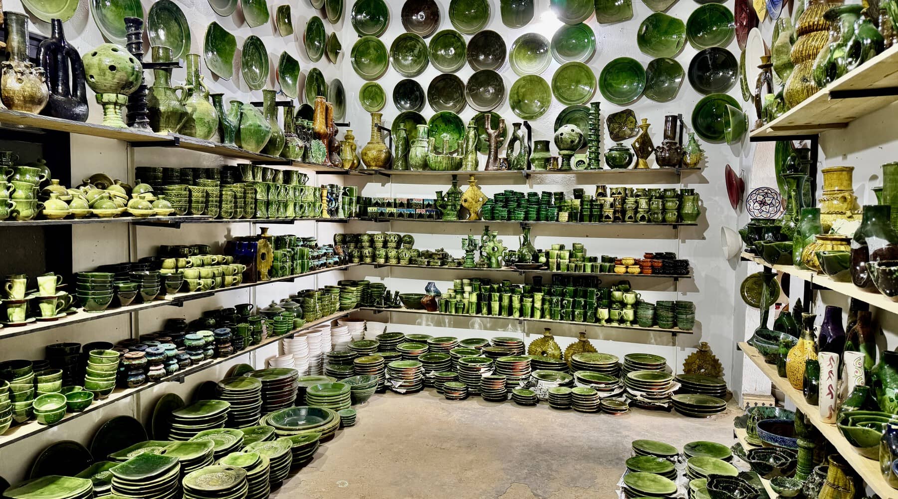 Vi besøgte en lille butik med håndlavet keramik i Tamegroute – et besøg, der varmt kan anbefales, hvis man er på gennemrejse i området omkring Zagora og Saharaørkenen.